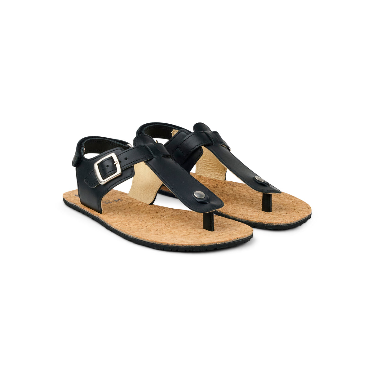 A minimalist sandal with a touch of cork, a buckle strap and a sandal-based sole with a medium toe box.