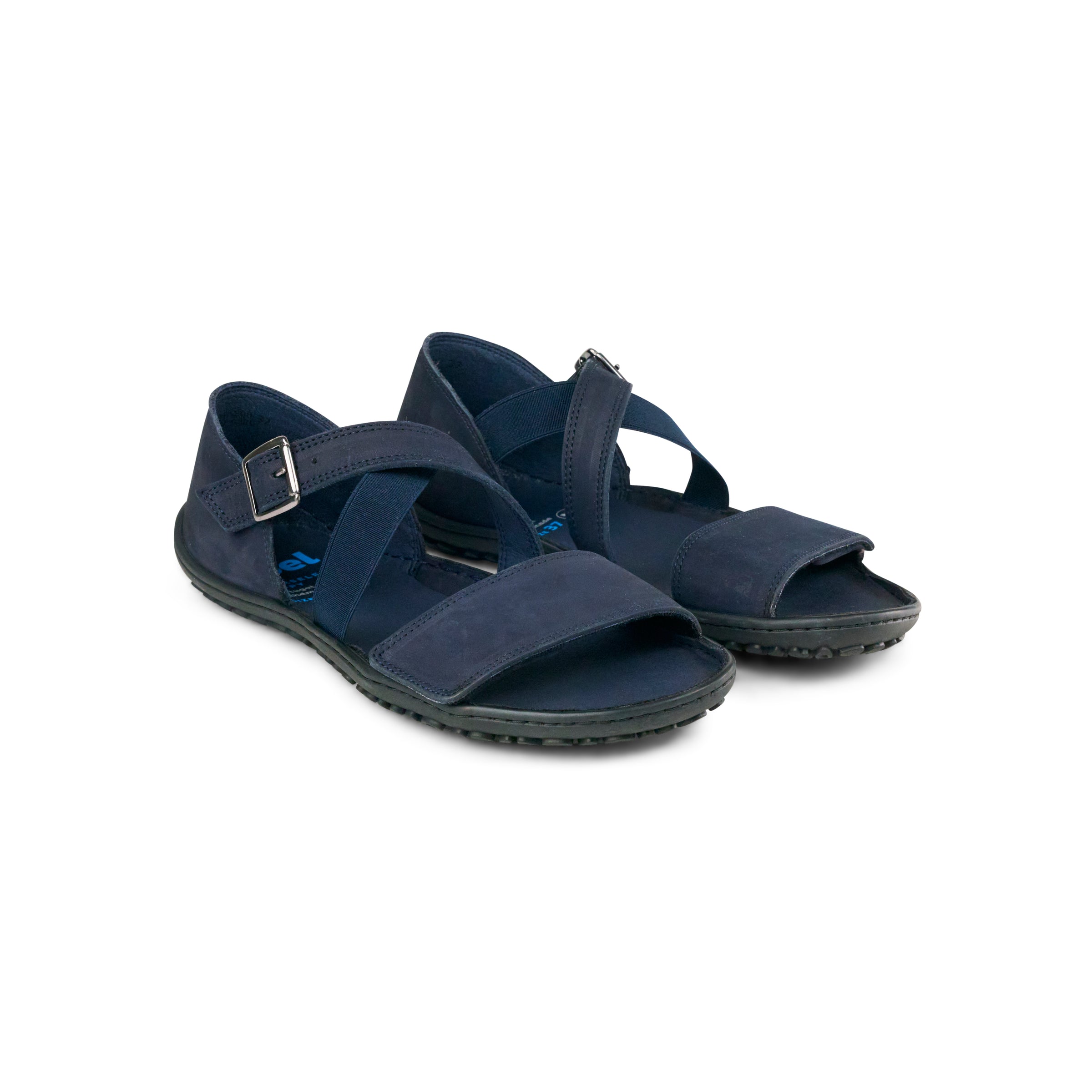 Crafted from soft nubuck leather and lined with breathable microfiber, these sandals offer all-day comfort. The design features an adjustable velcro strap across the toes and a nickel-free buckle at the ankle for a secure fit. A flexible 6 mm Memory Latex rubber sole ensures cushioned support with every step.
